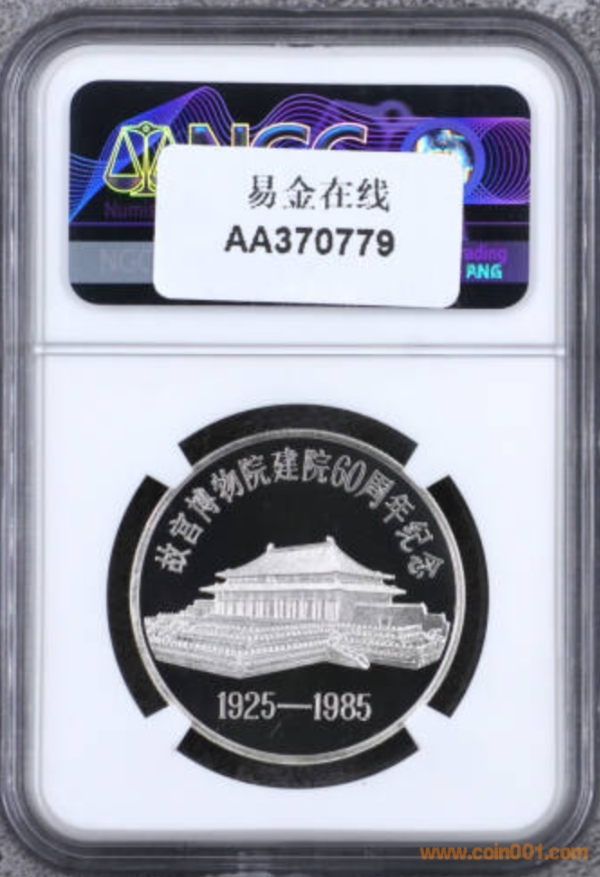 2014年3月,知名網(wǎng)友fwang2450在現(xiàn)代錢幣網(wǎng)發(fā)文,描述1985年故宮博物院六十周年銀章,提到:“幾個(gè)月前香港拍賣過一枚69UC的,4000美元加傭金。eBay上也出過一枚,3999美元秒殺。”
