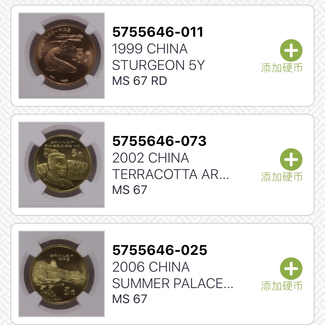 評級普通(精制)紀念幣交易