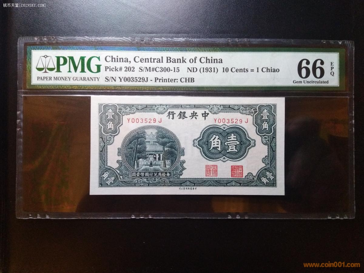 民國PMG66分中央綠壹角