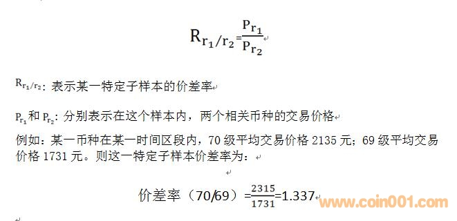 (2)環(huán)比價差率:“上一級別”以“下一級別”為“計算基點”,在可對應條件下,計算某一幣種與“計算基點”之間的價差率。例如:70級/69級、69級/68級……等等。