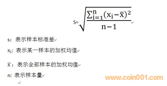 6.以上某一特定樣本組權重價差率的計算,僅反應這個樣本組的加權平均價差率,為反應這個樣本組中若干幣種的價差率的波動狀況,需引入標準差概念。