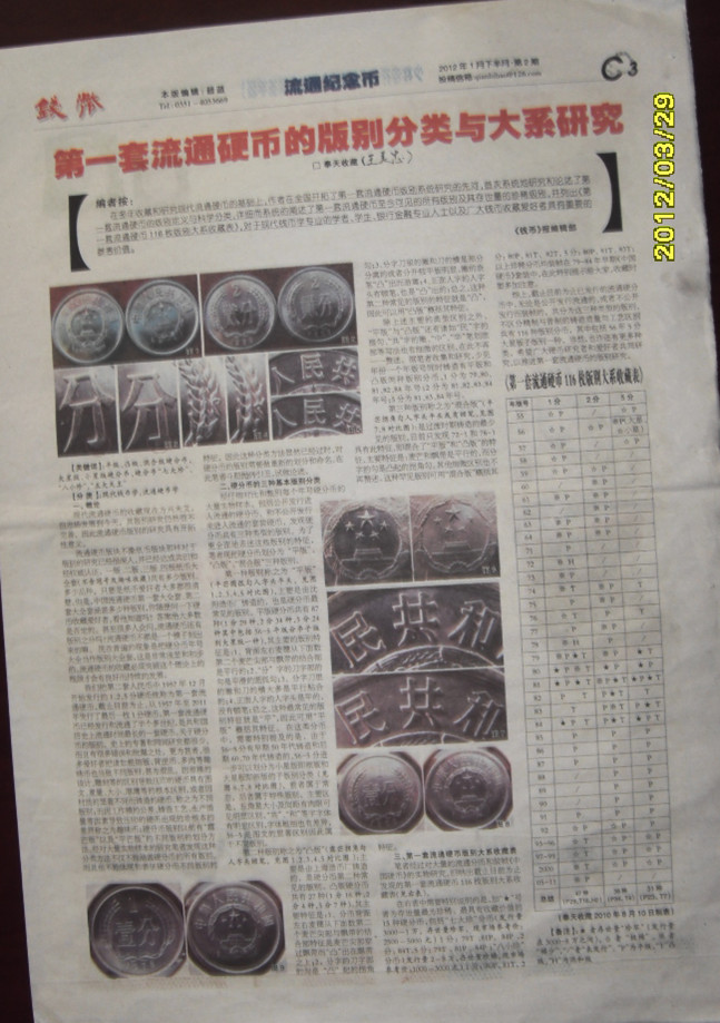 ???????? 流通硬幣版塊不象紙幣版塊那樣對(duì)于版別的研究已經(jīng)很深入,并已經(jīng)達(dá)成共識(shí)和經(jīng)權(quán)威認(rèn)證。一版、二版、三版、四版紙幣大全套(不含冠號(hào)及趣味收藏)共有多少版別、多少品種,只要是紙幣愛(ài)好者大多都很清楚。但是,中國(guó)流通硬幣第一套大全套、第二套大全套涵蓋多少種版別,你隨便問(wèn)一下硬幣收藏愛(ài)好者,看他知道嗎?答案絕大多數(shù)是否定的。甚至很多人會(huì)問(wèn),流通硬幣還有版別之分嗎?流通硬幣不都是一個(gè)模子刻出來(lái)的嘛。 現(xiàn)在普遍的現(xiàn)象是把硬分幣年號(hào)大全當(dāng)作版別大全套,這是非常淺顯和初步的。流通硬幣的收藏必須突破這個(gè)理論上的瓶頸才會(huì)有良好而持續(xù)的發(fā)展。