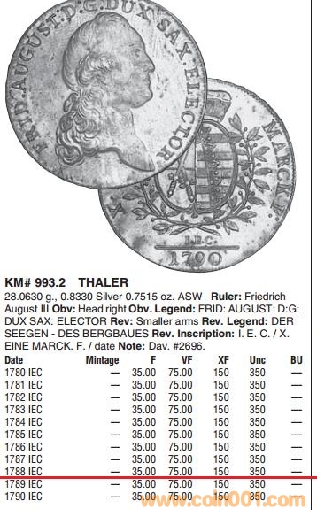 德國(guó)薩克森1788年 奧古 ..