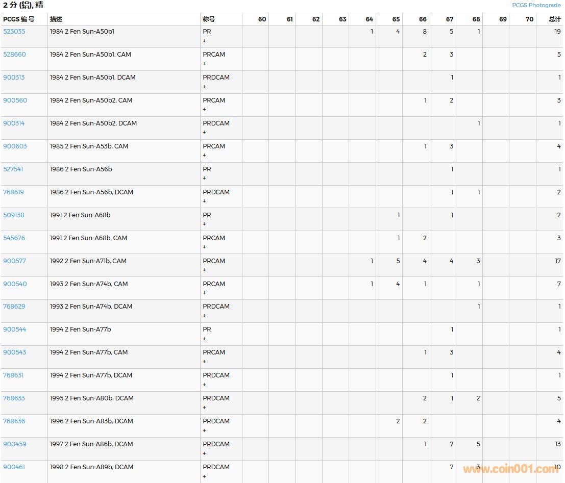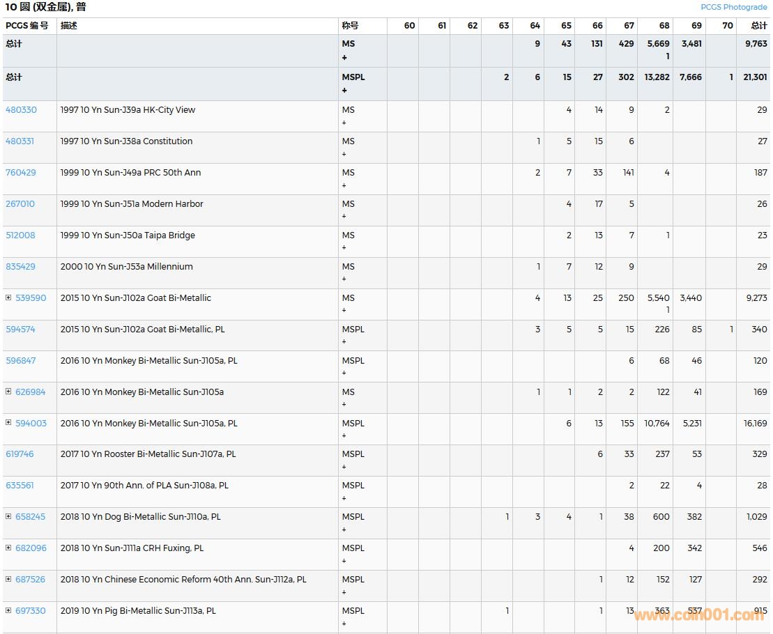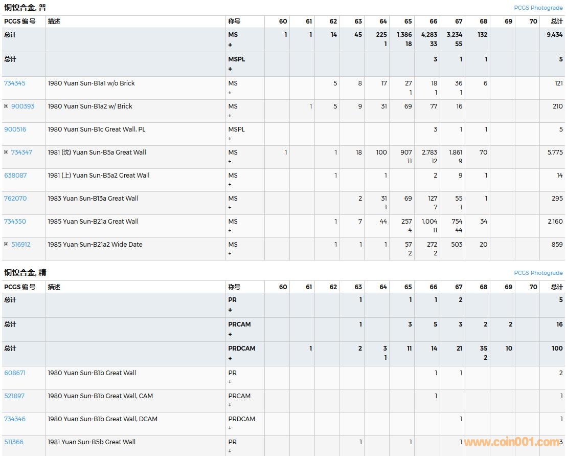PCGS硬幣評級數(shù)量報告( ..