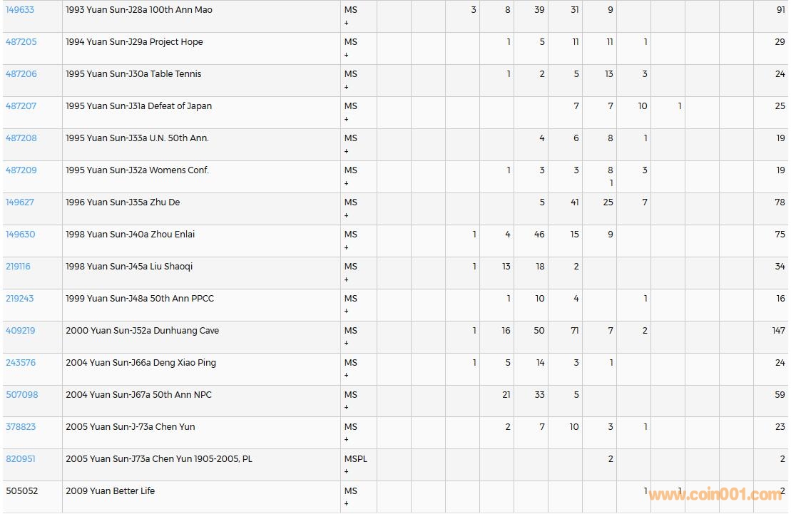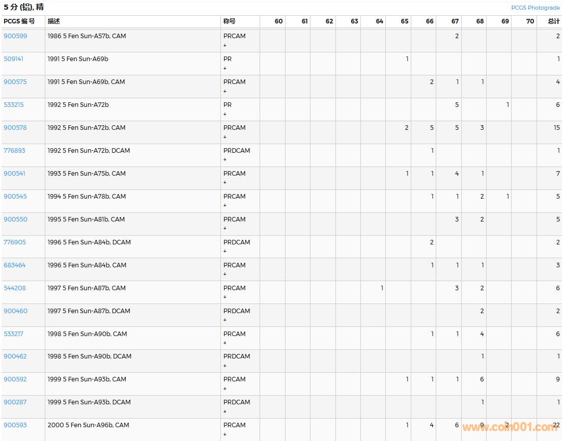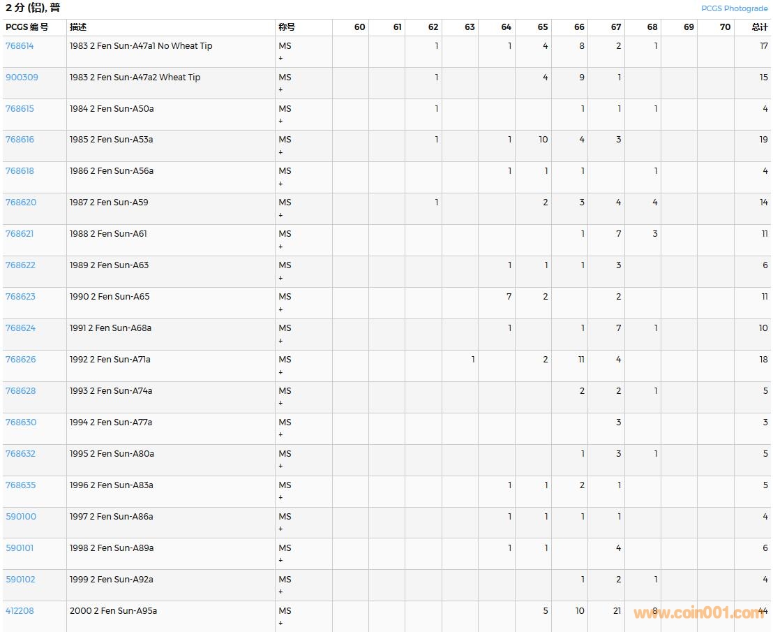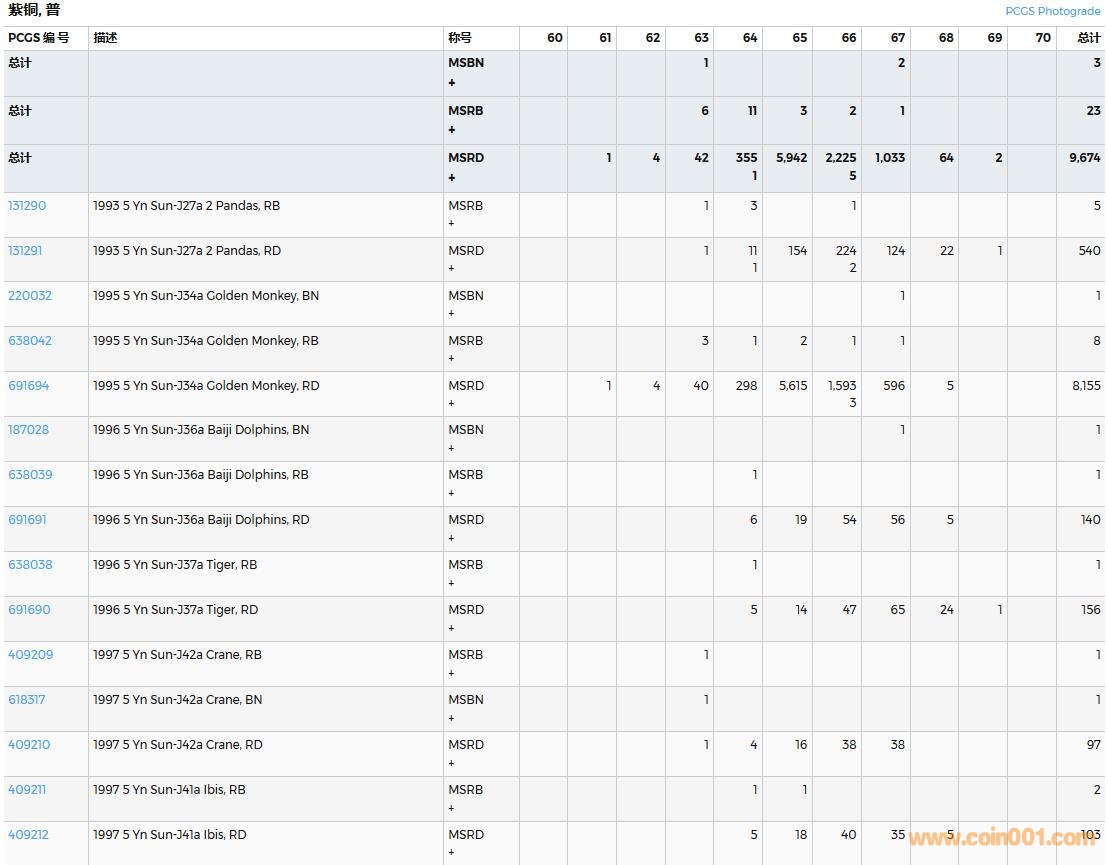 PCGS硬幣評級數(shù)量報告( ..