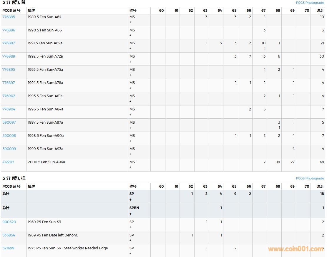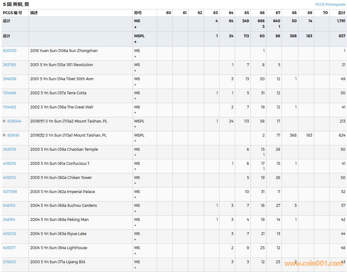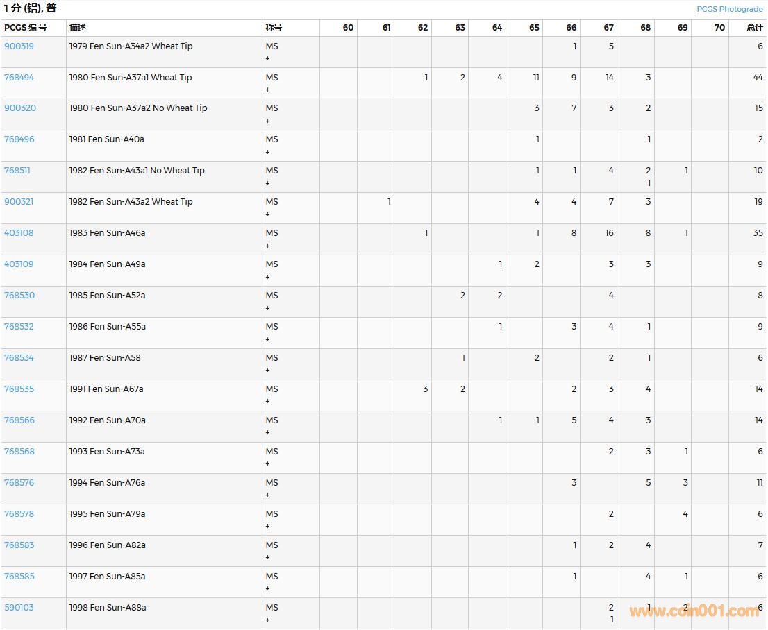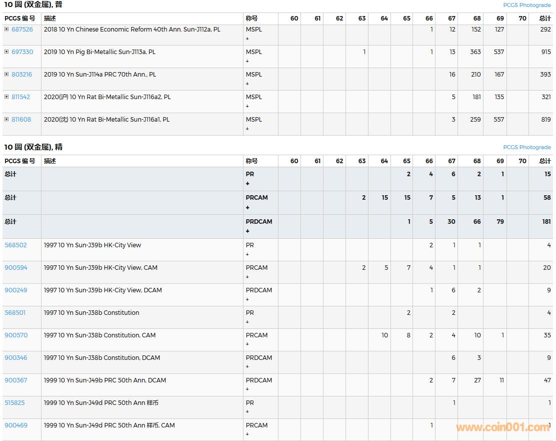 PCGS硬幣評(píng)級(jí)數(shù)量報(bào)告( ..