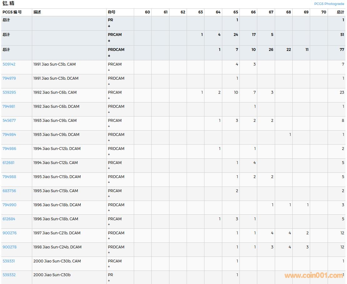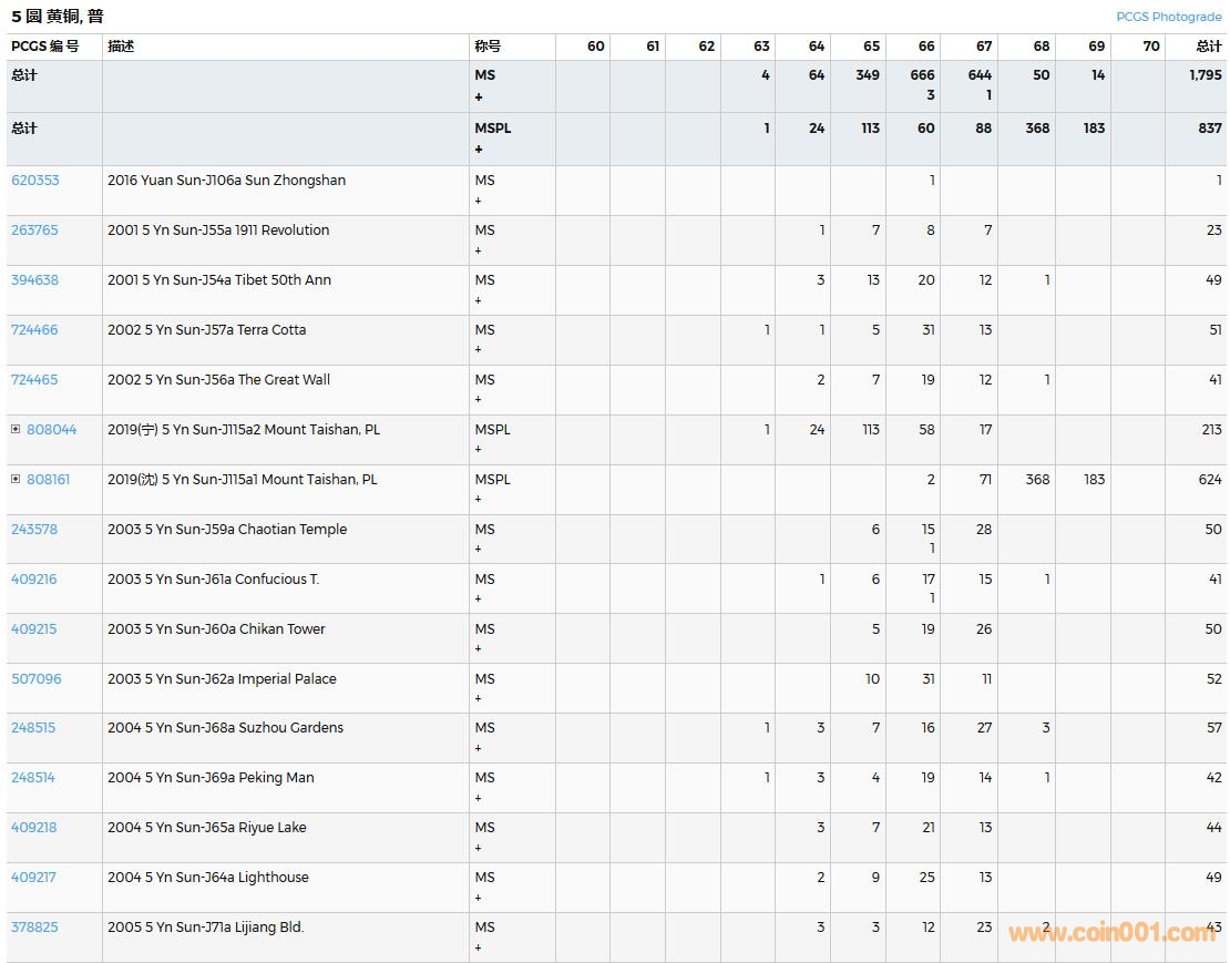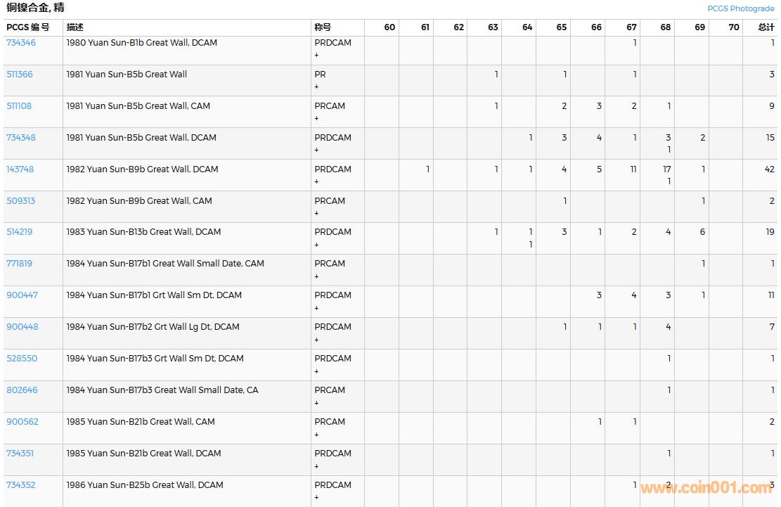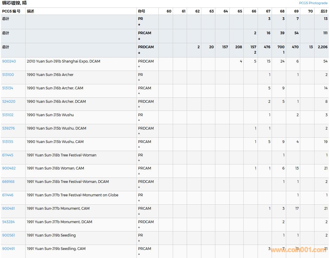 PCGS硬幣評(píng)級(jí)數(shù)量報(bào)告( ..