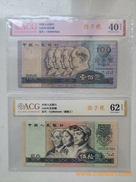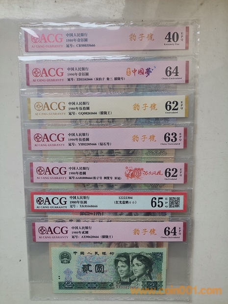 本套幣除了無4、7尾號為吉祥號666這一特征外,還有多張具有好號碼的其他特征。其中,倒置號3張(8010,805,902),朦朧王2張(8050,802),朦朧號2張(90100,961),鉆石號1張(9050)。由于80100和8050的稀缺性,尋找這二張尾號666品相稍微好一點(diǎn)的豹子號實在是太難了。現(xiàn)在尚且如此,相信將來更不好找。在改*號幣層出不窮的今天,真品難得啊。另附皮質(zhì)精美珍藏冊和手提袋,無論是個人收藏還是饋贈親友,都是一件珍貴、完整、成熟的收藏品。15000元包順豐。
