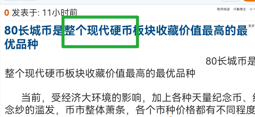 不少幣友應(yīng)記得,2017年文交所后期,整個硬幣版塊衰聲一片,只有80長城幣的價格不斷地上漲,在短短一個多月的時間,普通品相就從原來的120元上漲到300元上下,成為當(dāng)時硬幣版塊一道亮麗的風(fēng)景線,當(dāng)時錢幣各種炒作成風(fēng),起初大家以為80長城幣也是炒作,其實(shí)不然,而是80長城幣的收藏價值有了新的進(jìn)展,讓大家認(rèn)識到這么好的幣種只有一百多元,太便宜了!因此引發(fā)了80長城幣價格的爆長。普通品相300元上下這個價格也一直維持到現(xiàn)在,兗份證明了80長城幣價格的爆長不是炒作,如果是炒作,炒作收官后,80長城幣的價格按正常炒作規(guī)律,其價格應(yīng)回到比原來的價格120元低一些,即約110元。經(jīng)過了將近七年的沉淀,80長城幣的收藏價值又有了新的進(jìn)展,甚至是新的突破,肯定也會讓80長城幣的價格往上漲,可望普通品相從現(xiàn)在的300元上下上漲到400元上下,以至更高。在2017年,我把80長城幣價格的爆長稱為80長城幣第二次浪潮,現(xiàn)在感覺80長城幣第三次浪潮已越來越近了!