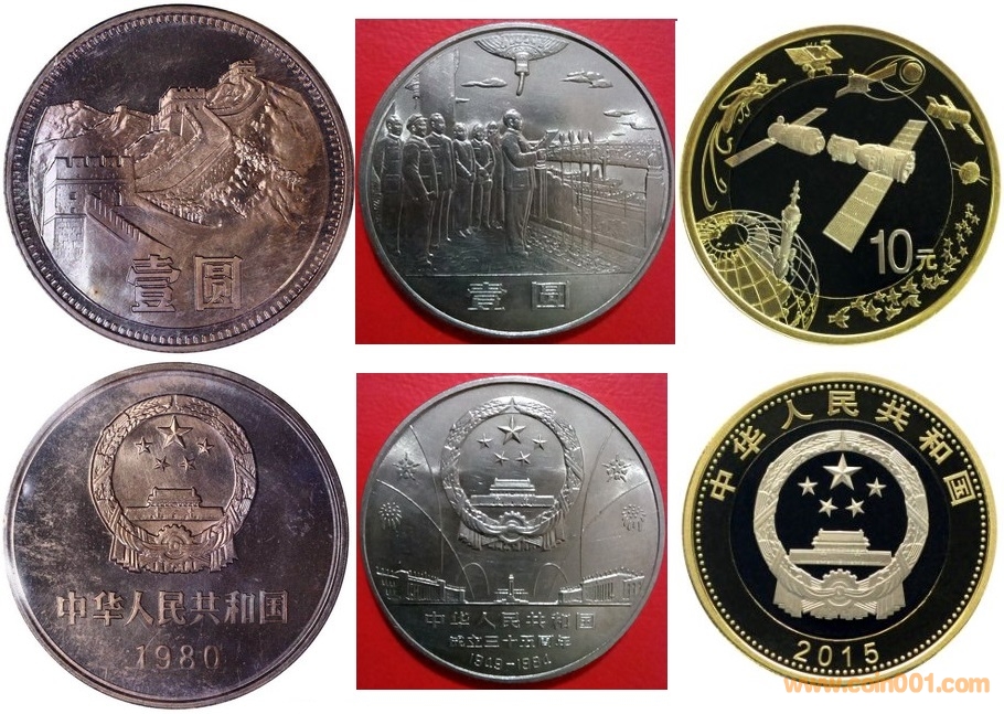 以下是80長城幣、建國35周年和中國航天紀(jì)念幣的正背面圖: