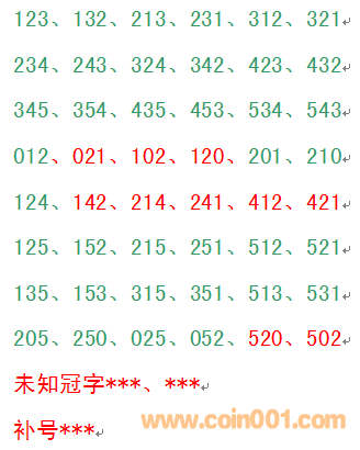 ③ 012冠字組中,有012、201、210冠字發(fā)現(xiàn),另三種冠字未發(fā)現(xiàn)。