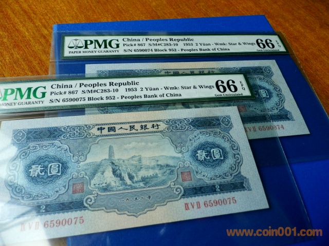 二版幣黑一紅一貳元 ..