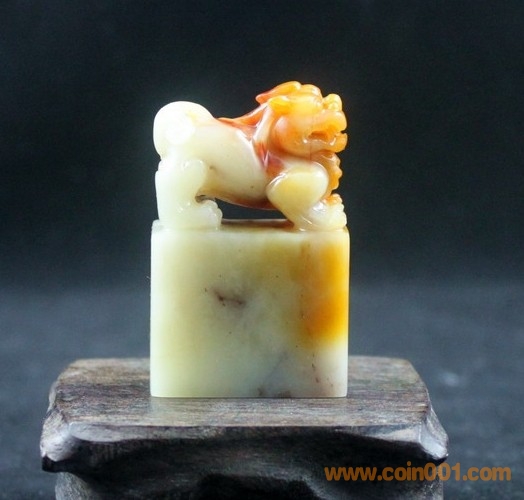 (3)壽山石之三色芙蓉石古獸鈕章,章高5.2公分、章面3.2*1.5公分,壽山石老性三色芙蓉質(zhì)地,古獸鈕扁章,精巧大方,配送木底座及錦盒,全品,無缺陷,包真包正宗壽山石,價格:850元,實在價格,不接大刀;