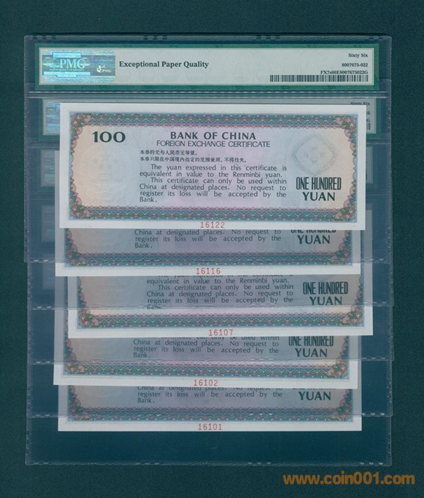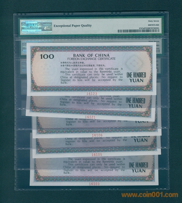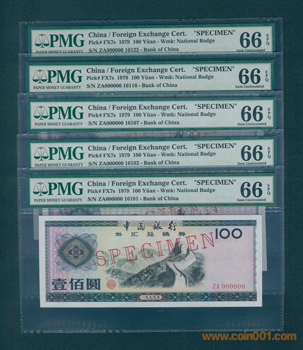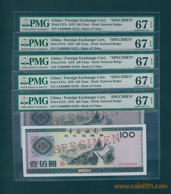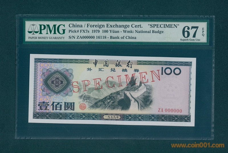 絕中絕外匯券PMG66-67分79年100元票樣 EPQ 價格;  66分 1800元 67分 2000元