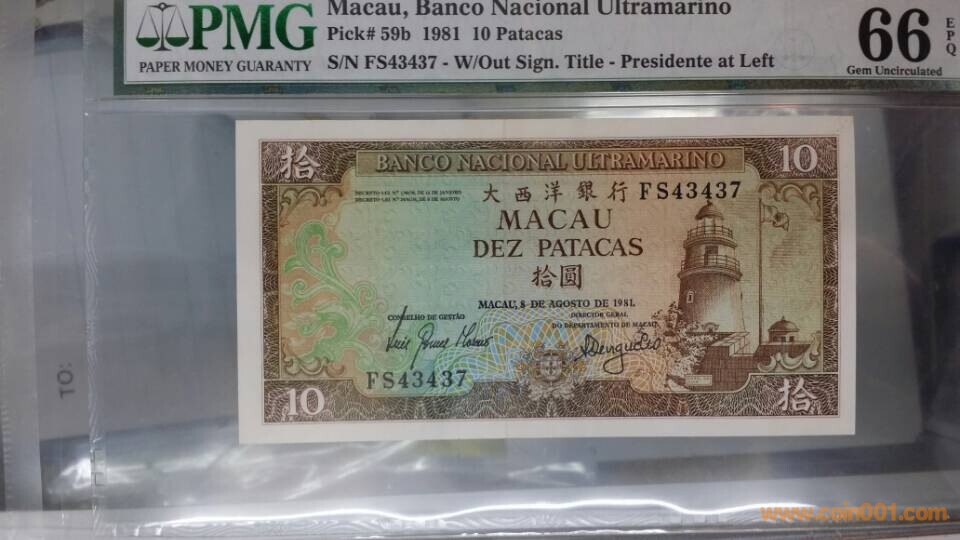 圖片:澳門大西洋銀行,1981年,拾圓,F(xiàn),S43437,PMG,66,EPQ.jpg