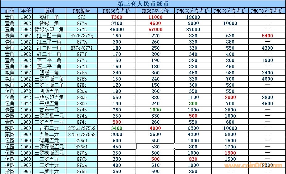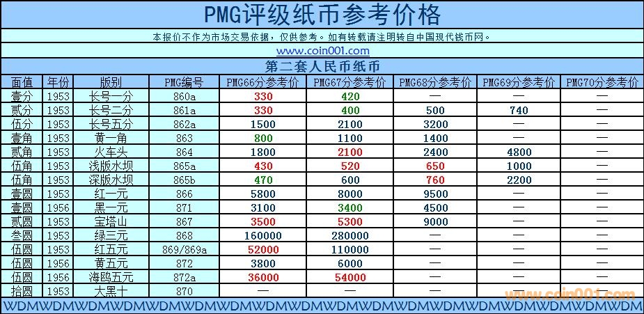 2018.8.1PMG評(píng)級(jí)紙幣參考 ..