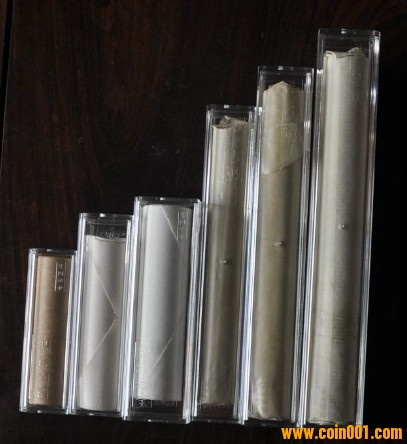 出:硬幣卷幣方筒,可放1.2.5分50枚裝原卷幣,1.2.5分100枚裝原卷幣,蘭花一角,荷花五角,菊花一元,菊花一角,梅花五角,牡丹一元,生肖,偉人,遺產(chǎn),臺(tái)灣,長(zhǎng)城一元等等流通硬幣,流通紀(jì)念幣