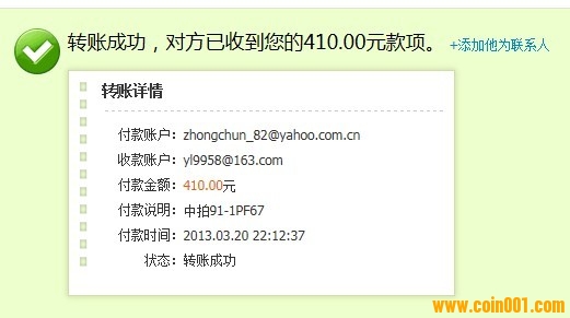轉(zhuǎn)賬交易成功 交易時間:2013年03月17日 22:19:24 網(wǎng)銀流水號:02013031722187327220