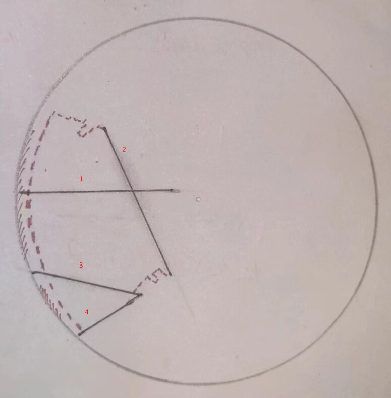 當該坯餅進入沖壓機成型的時候,該位置附近受模具壓得深的位置(下圖紅色虛線)與原受傷深痕形成幾何圖案閉合(共三塊:上面兩塊,下面三角形)。再由于本身該位置已經(jīng)翹起、底部開裂、變脆,所以就會整塊整塊脫落,另外清邊也會部分脫落。(下圖陰影部分就是脫落部分,完全與該幣吻合)