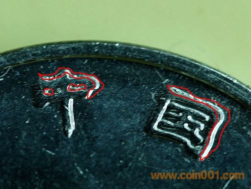 陰模在翻模過(guò)程中發(fā)生重模的方式,決定了重模上的重影顯示為凸出而圓滑的伴隨圖案,與硬幣上的正常圖案相類似。了解這一點(diǎn)十分重要。如果字母有襯線,那么重模的字母在襯線部分會(huì)顯示為“開(kāi)裂”。如果字母的邊角方正,這些邊角經(jīng)常會(huì)顯示為“刻痕”。重印圖案之間的距離被稱為重影的間隙。重影之間的間隙可以很寬,也可以非常窄。