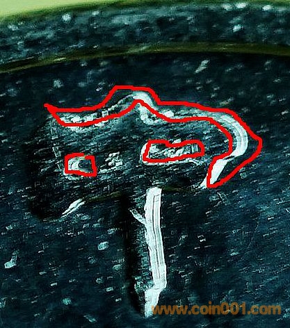 既然二元模和工作模是手工放入翻模腔的,二元模就有可能沒(méi)有精確地放在工作模的上面。如果二元模和部分完成的工作模上的圖案之間出現(xiàn)任何類型的位移,工作模就會(huì)在位移的位置上出現(xiàn)重影現(xiàn)象。這樣就產(chǎn)生了“重?!?。如果這個(gè)重模被用來(lái)壓印錢幣,該工作模壓印的所有錢幣上都會(huì)顯示同樣的重影。
