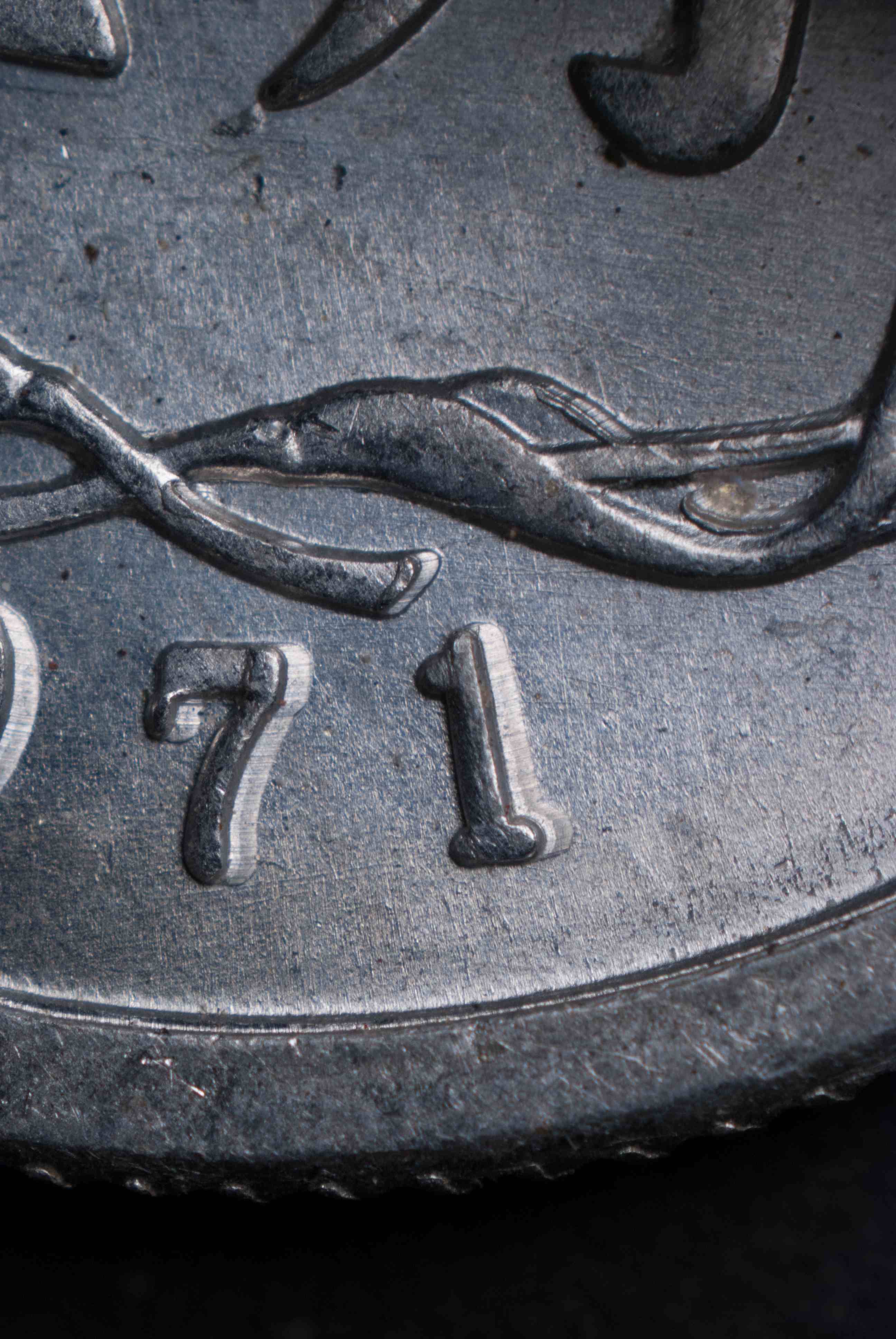 這一決定的后果很快就顯現(xiàn)出來(lái)。1969 年,在 1969-S(S為舊金山造幣廠廠記 – 譯者)林肯分幣上有明顯的重?,F(xiàn)象。1970-S 林肯分幣上再度出現(xiàn)重大重模問(wèn)題。有幾枚重模被用在 1971 年林肯分幣的生產(chǎn)中,因此1971-S 精制分幣就出現(xiàn)兩個(gè)重大版別。到了 1972 年,重模問(wèn)題一發(fā)不可收拾。所有三家造幣廠在林肯分幣的生產(chǎn)中都出現(xiàn)了幾個(gè)重模版別,包括費(fèi)城造幣廠用來(lái)生產(chǎn)分幣的正面幣模的重大重模。在這期間,其它面值硬幣的生產(chǎn)中也出現(xiàn)了嚴(yán)重的重?,F(xiàn)象。在 1972 年重模版別泛濫成災(zāi)、造成轟動(dòng)以后,美國(guó)造幣局恢復(fù)了在陰模和陽(yáng)模周圍加凹凸槽的做法。
