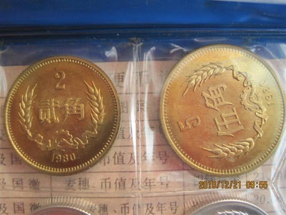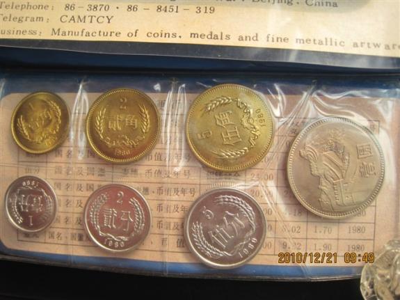 引用 引用樓主石猴于2011-03-16 13:47發(fā)表的 出80藍皮一本 : 80藍皮長城套幣一本,售價5000元RMB,包郵包幣品如圖 該套幣去年購自樂其中王兄處,因最近購得品相更好的套幣,才出售此套幣。80長城天王套幣優(yōu)缺點就不多贅述了,僅對此藏品做一些說明,封面的燙金略有脫落,說明書的塑封有開裂,幣封完好,分幣完美品相,角幣略有均勻氧化 [attachment=4339] [attachment=4340] .......