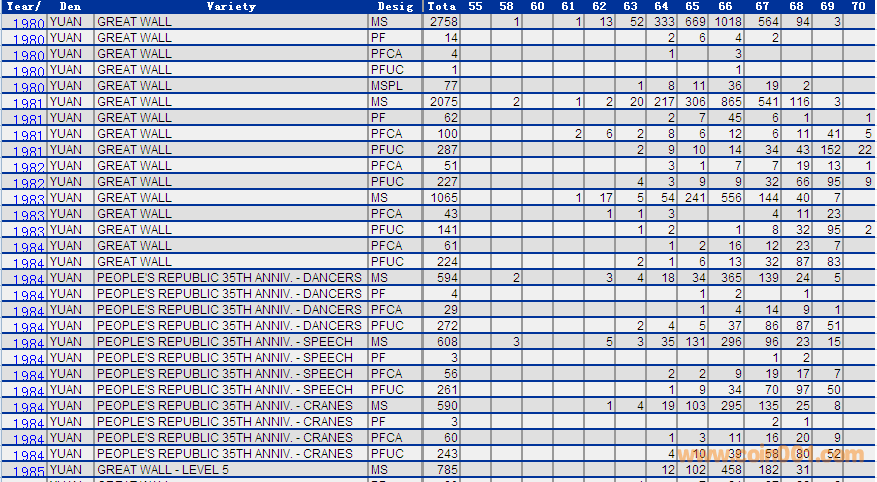NGC硬幣評(píng)級(jí)分?jǐn)?shù)分布 ..