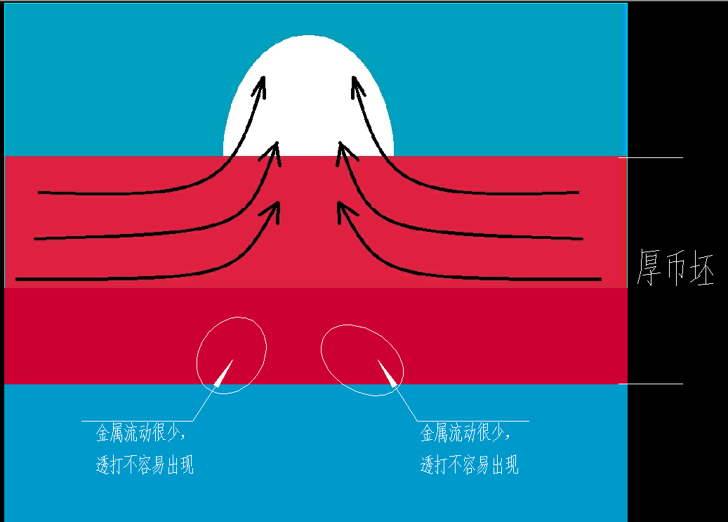 1、由于壓力,產(chǎn)生坯鉼金屬流向模具凹陷處形成幣面的凸出圖紋,金屬流動(dòng)產(chǎn)生流動(dòng)痕跡即鑄紋;