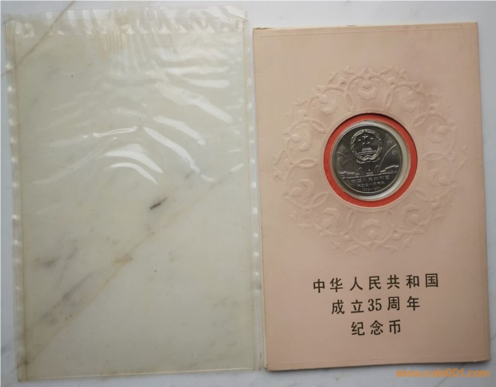 “建國35周年”開國大典(國徽朝外)裝幀卡,是中后期的產品,您稱呼為“半精制”是相對于精制幣而言,而您并沒有找到您認可的上海版精制幣。