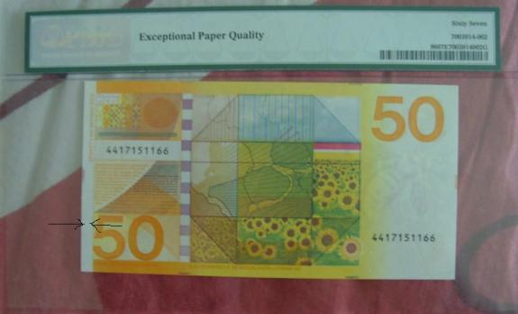 與此相反,有些國(guó)內(nèi)標(biāo)準(zhǔn)視為全新連號(hào)好品的紙幣,肉眼看不出油墨層有何磨損,也沒(méi)有折痕,PMG評(píng)分卻只給到58分。(在網(wǎng)上見(jiàn)過(guò)這樣的58分小連號(hào)背綠。)