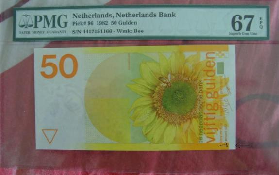 咱們國(guó)內(nèi)一般把票面生有黑點(diǎn)、黃癍視為紙幣收藏的大忌,這種貨根本不被視為全品,更不要說(shuō)絕品了。但PMG卻有把這種紙幣評(píng)到64-66分的例子。