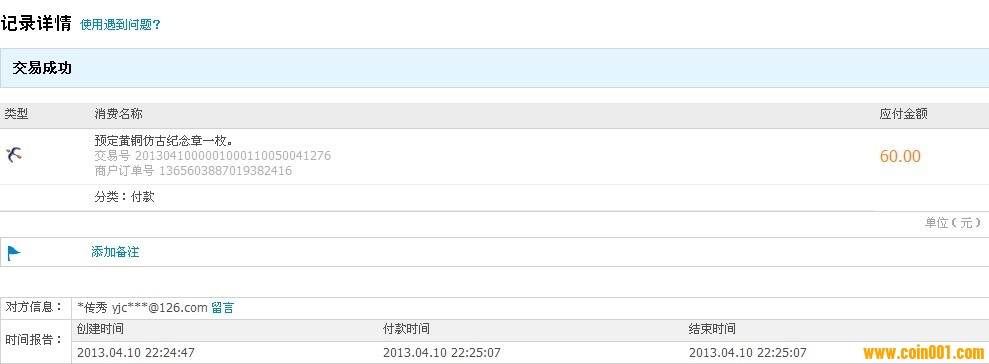 引用 引用第67樓zhanglf1981于2013-04-10 22:23發(fā)表的 : 再預(yù)定黃銅仿古紀(jì)念章一枚,一起發(fā)貨即可,60塊十分鐘之內(nèi)轉(zhuǎn)多多支付寶。