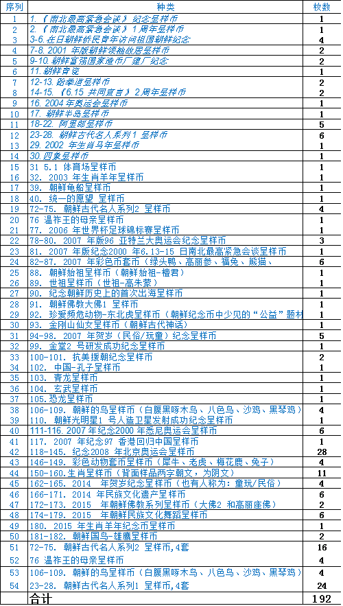 出朝鮮呈樣幣一批