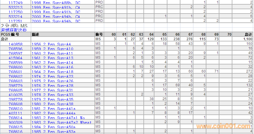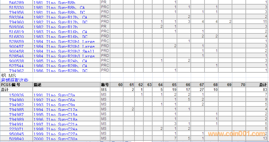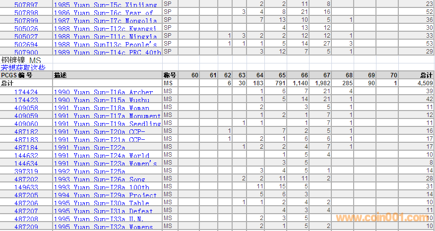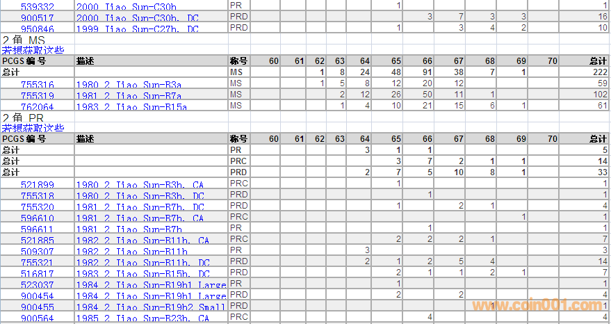 PCGS硬幣評級數(shù)量報(bào)告 ..
