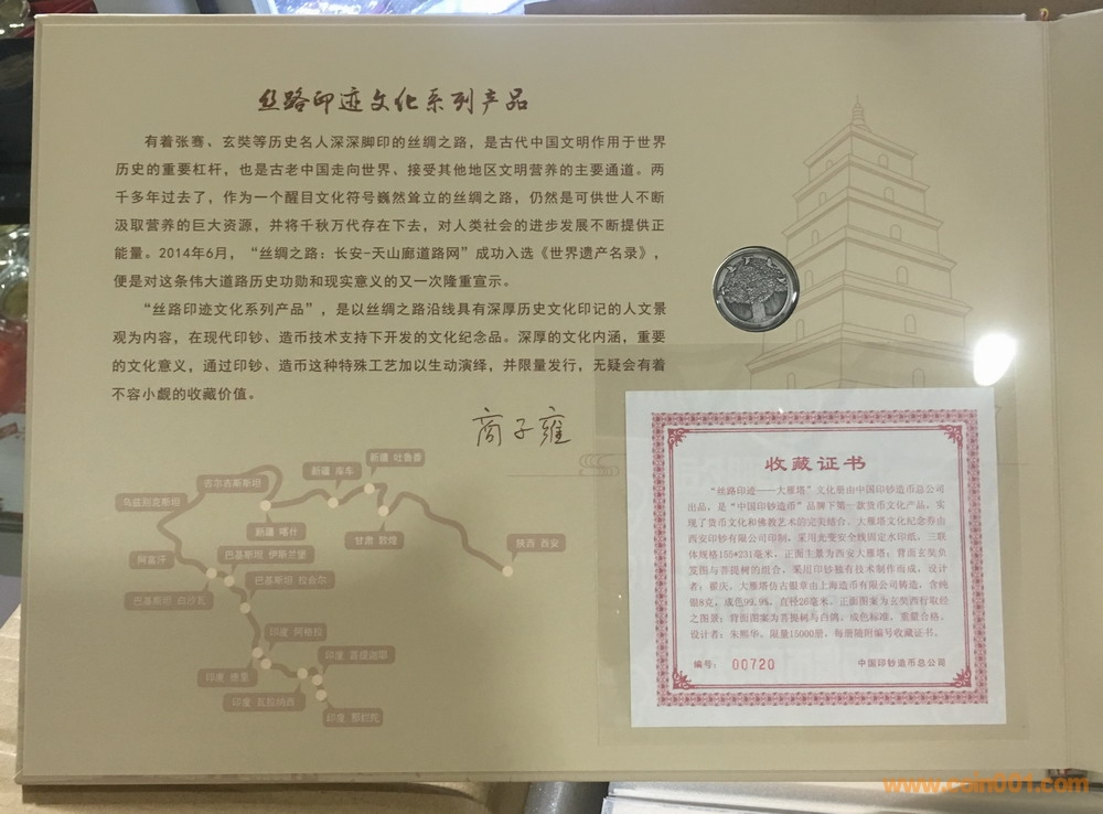 大雁塔 內(nèi)含造幣廠8克玄奘紀(jì)念銀章一枚 大雁塔三連體測(cè)試鈔(熒光下可見金粉) 二猴紀(jì)念幣一枚 附證書