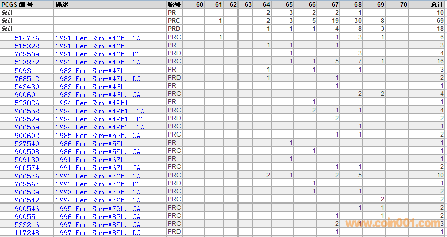 PCGS硬幣評(píng)級(jí)數(shù)量報(bào)告 ..