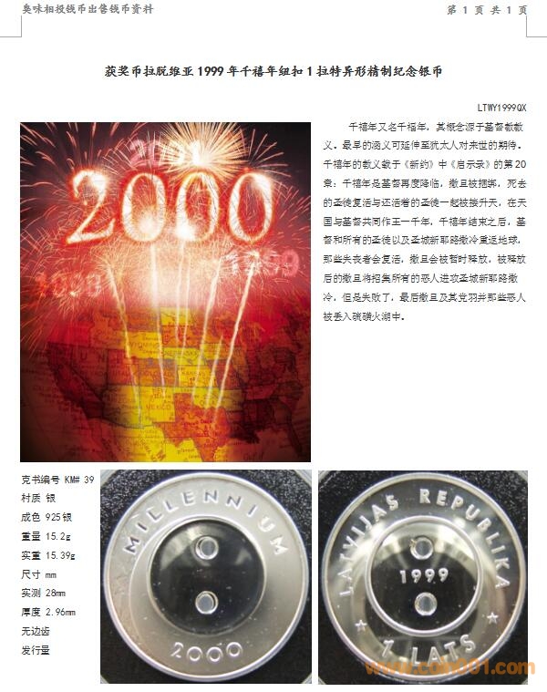 獲獎(jiǎng)幣拉脫維亞1999年 ..