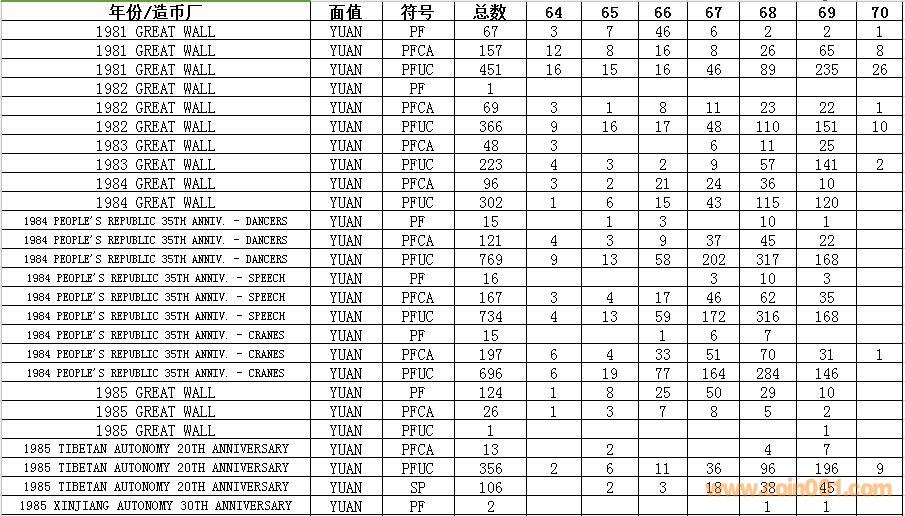 NGC硬幣評級數(shù)量報告 ..