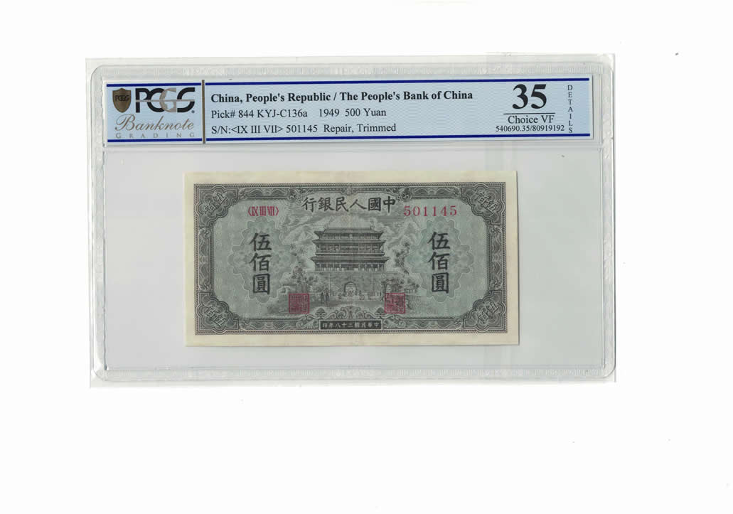 500元正陽(yáng)門(mén)PCGS35分-----7000,