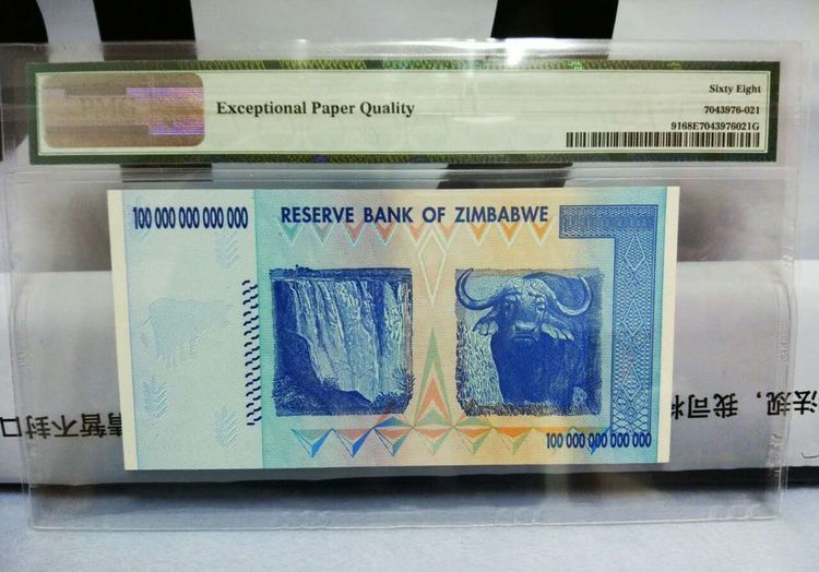 PMG68E AA3671550 津巴布韋100萬億世界最大面值紙幣
