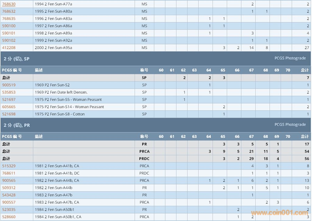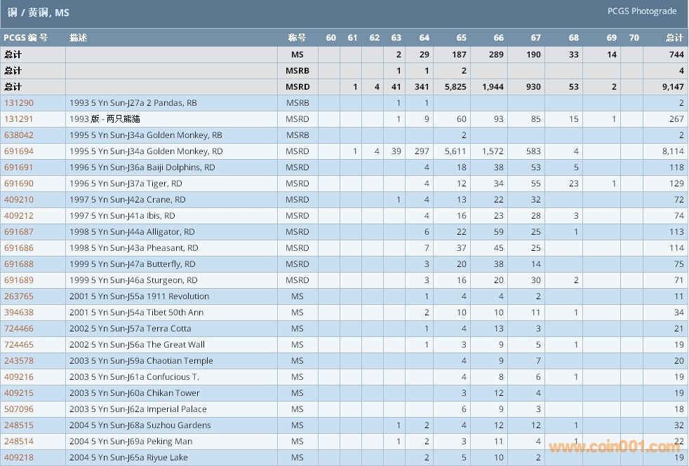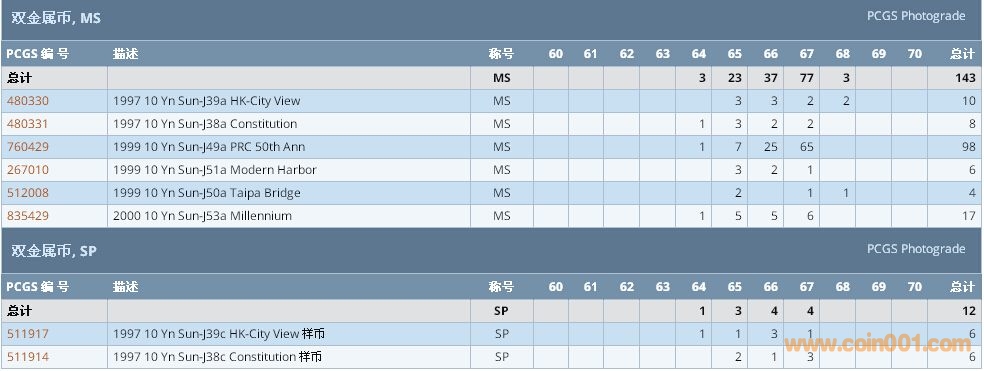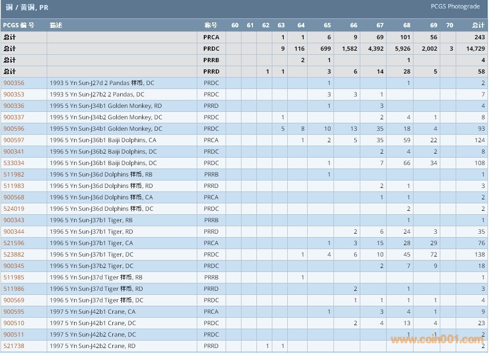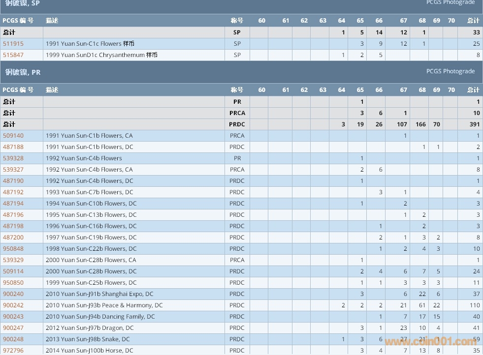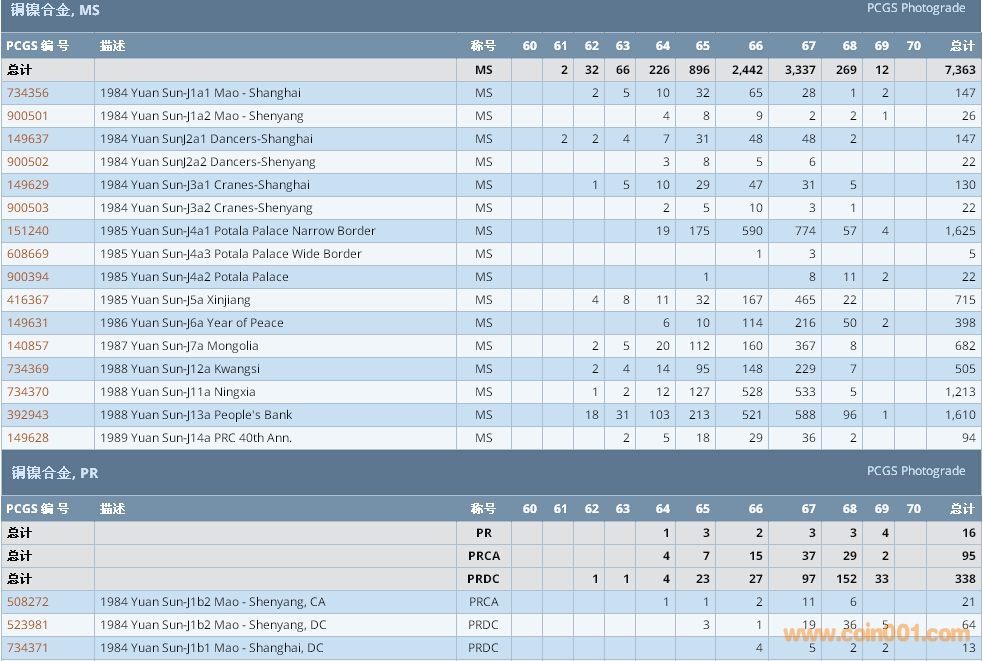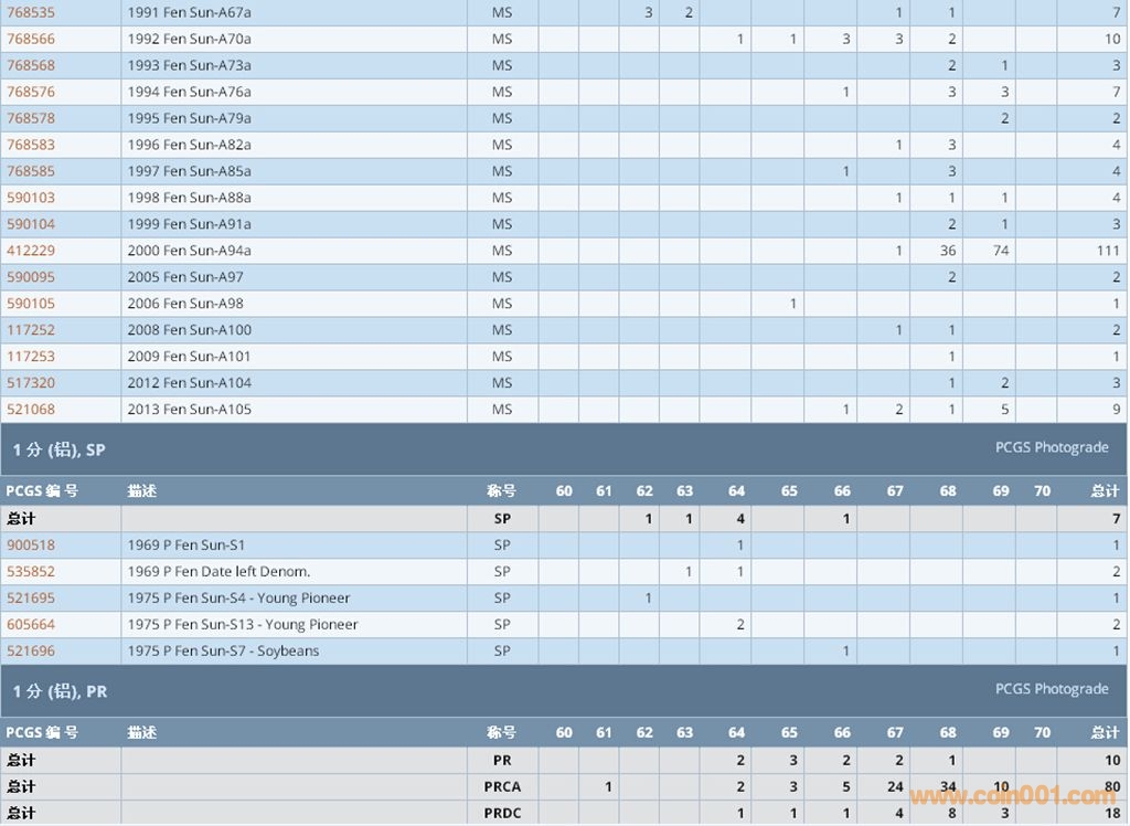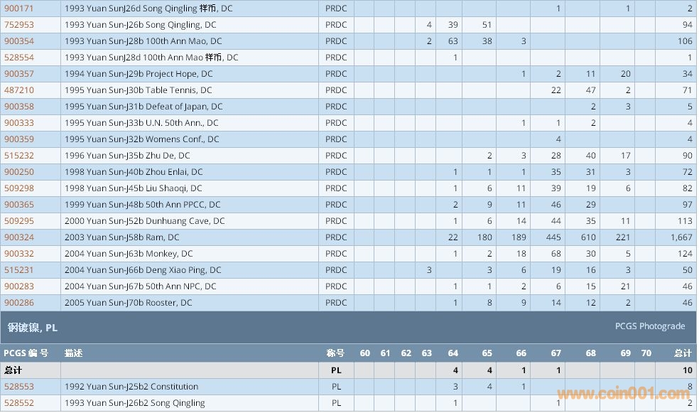 PCGS硬幣評級數(shù)量報告 ..