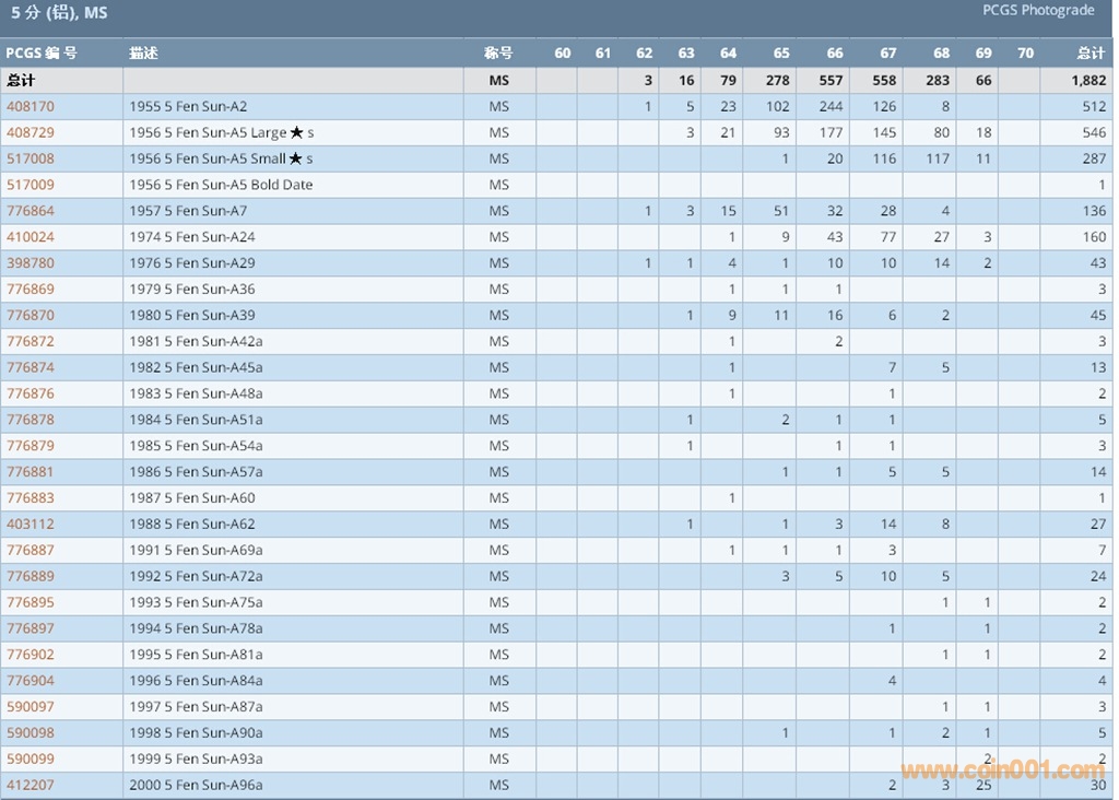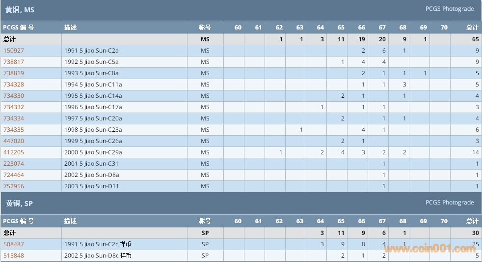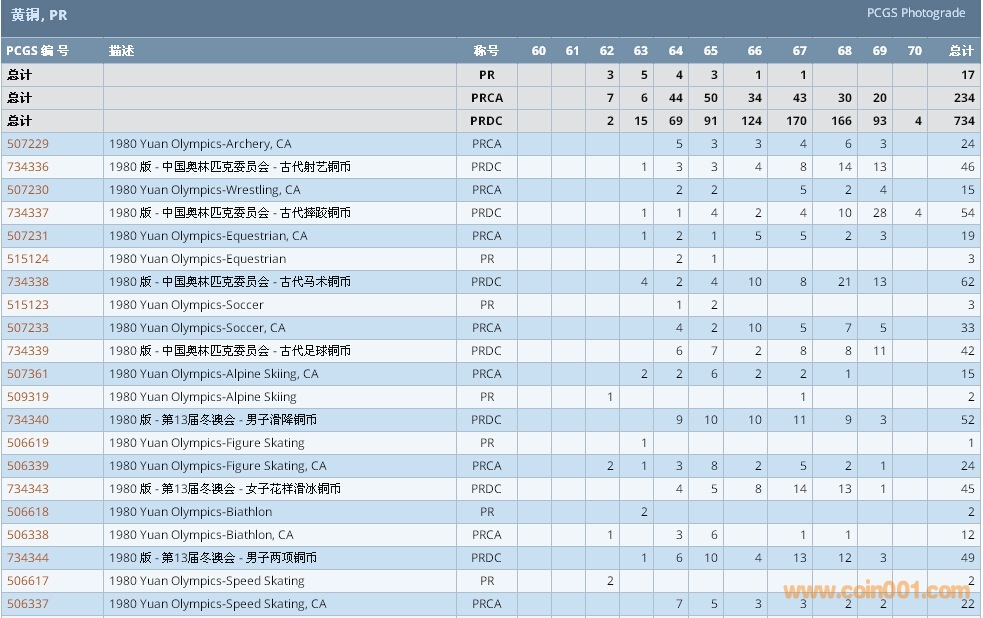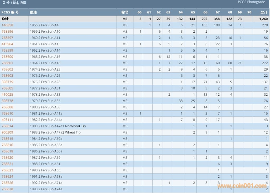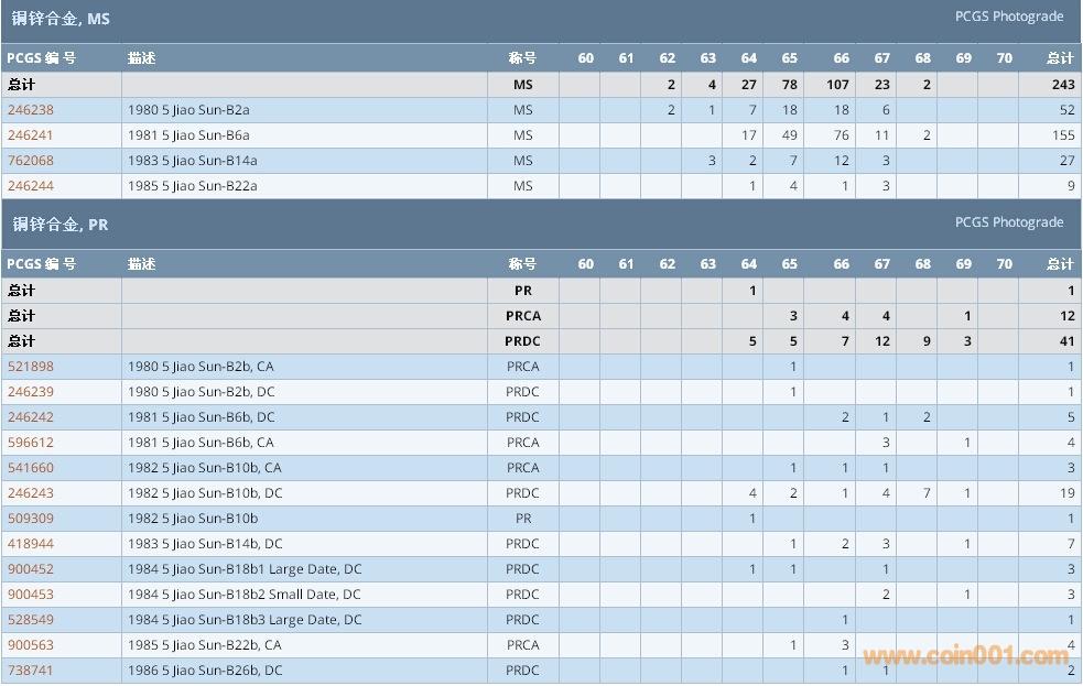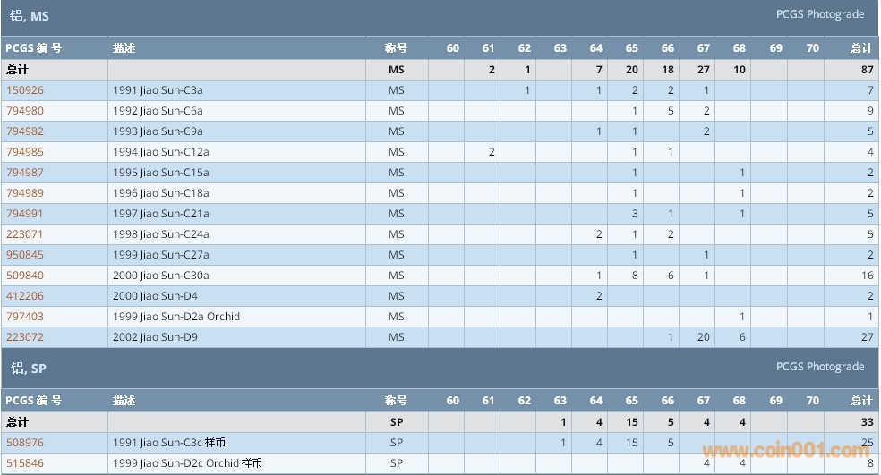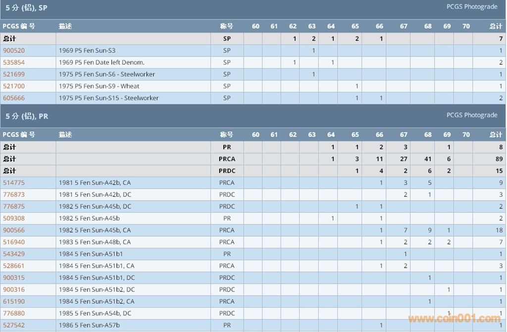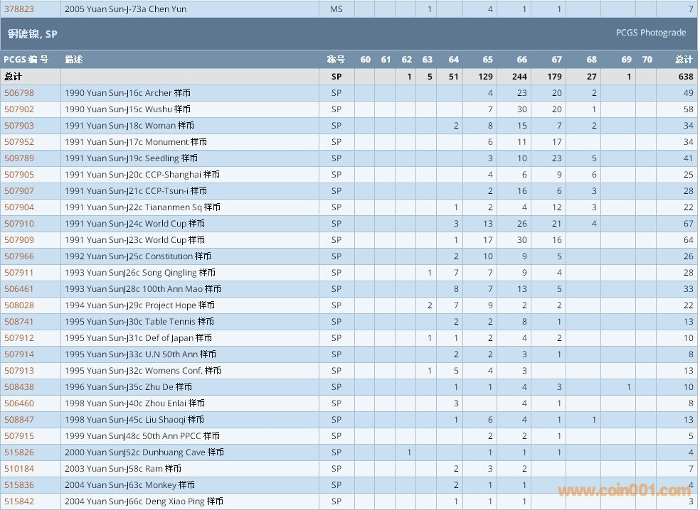 PCGS硬幣評級數(shù)量報告 ..