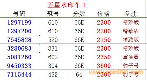 ◆最后7張 五星車工 ..
