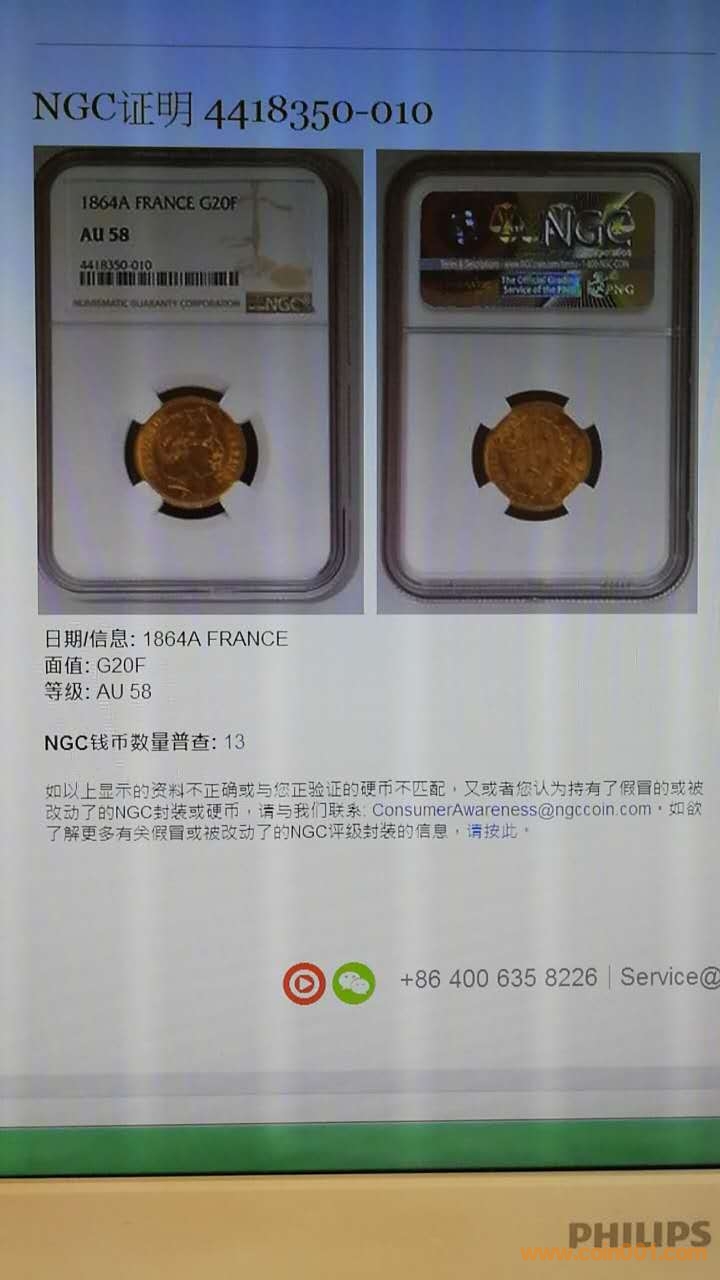 1864拿破侖金幣NGC AU58