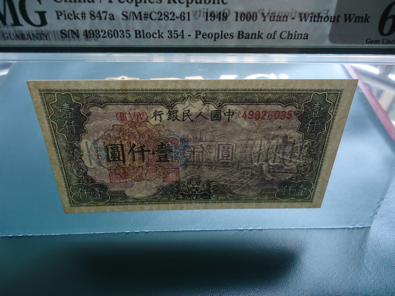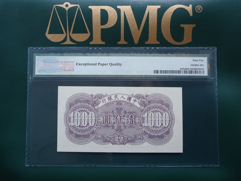18拍 0元起拍 中央銀行 PMG 66分 關金壹千圓 稀罕的大業(yè)印鈔廠出品 MM雙冠 全程無47尾6223 的靚號!絕中絕刀貨送評的 剛嚴評回來的第三代PMG高清盒 絕對值得珍藏 民國鈔的66分 等于新鈔的69分的難度!看好了 不是小盒子 第一次是花了315元的評級費評級 出分了后挑選無47的牛號66分 再花300發(fā)去美國換了大盒子 是豎放的 欣賞起來檔次明顯不一樣的!面積和雙龍一樣大小 絕對的霸氣!