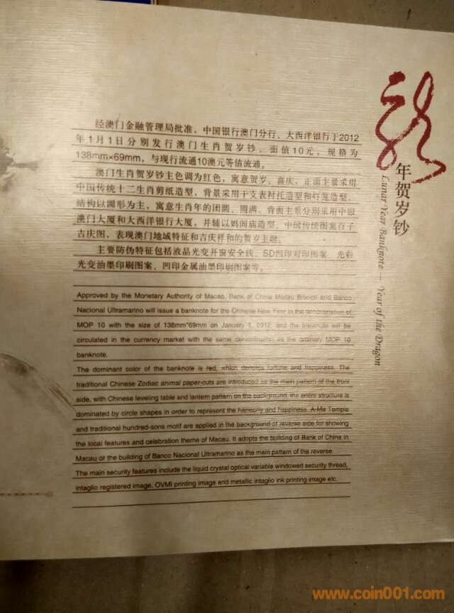 澳門一版生肖龍對(duì)鈔 ..
