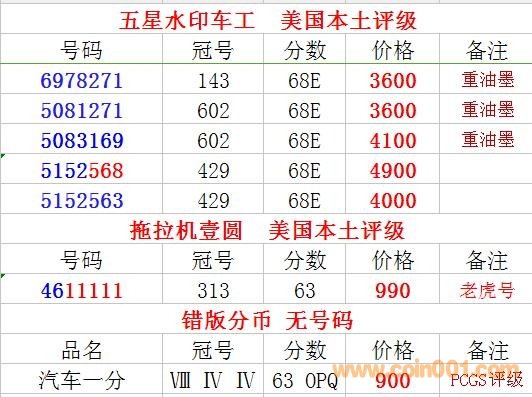 評級普通(精制)紀念幣交易