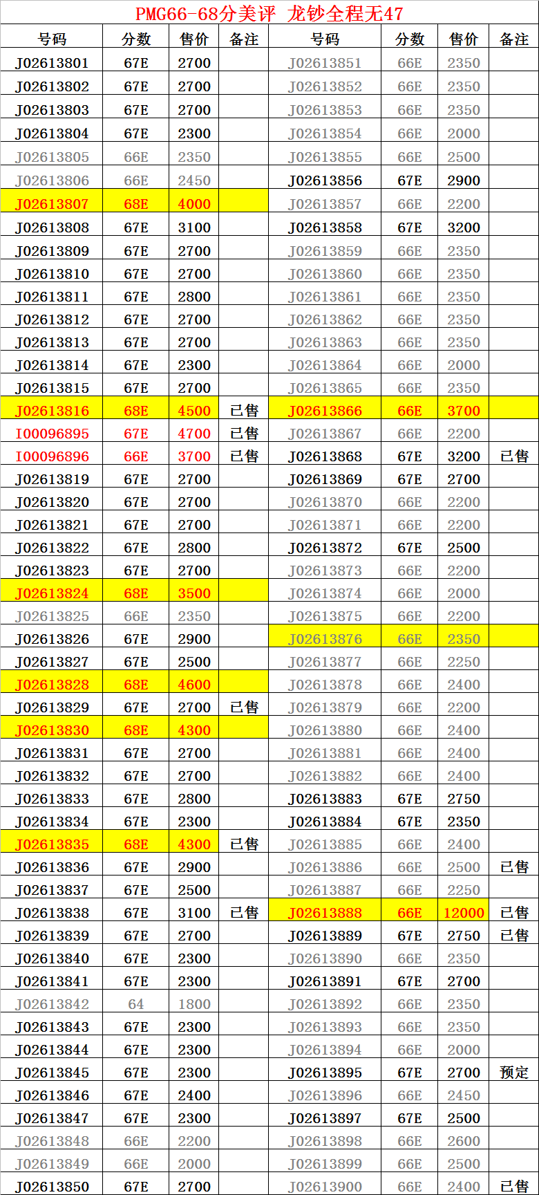 PMG66-68分刀評(píng)龍鈔,全 ..