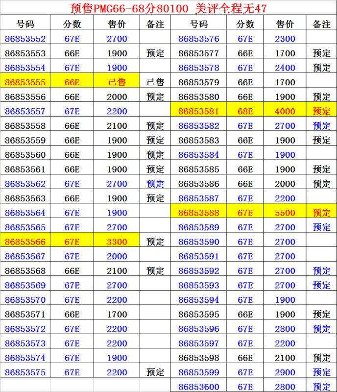 預(yù)售PMG66-68分80100、CZ ..